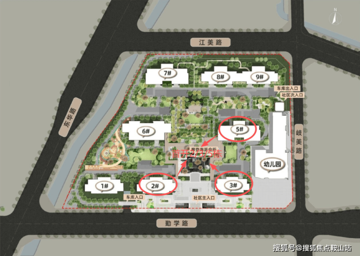 建筑规划:8栋高层住宅+12班公立幼儿园,建筑限高80米,户户朝南,中轴对称布局