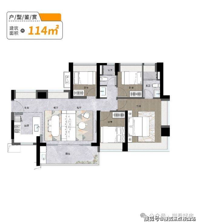除了83㎡、98㎡两大主力户型,珺奕府还推出89㎡进阶三房两卫与114㎡全能四房,覆盖不同家庭需求: