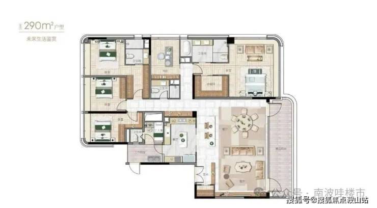 290㎡五房户型鉴赏◎——汇悦台创纪录4.6亿+网签单元设计师亲自执笔