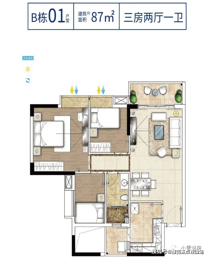 项目目前在售的是B栋,总楼层18层,在售面积约74㎡、87㎡、97㎡、109㎡、110㎡。