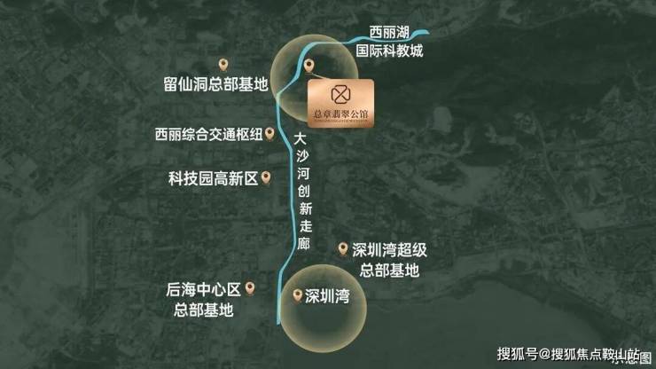 总章翡翠公馆落址深圳市南山区西丽塘朗山下、大沙河畔,地处西丽核心板块,毗邻大沙河创新走廊,上游衔接西丽湖国际科创城,中游紧邻留仙洞总部基地,下游通达深圳湾和高新园,承接四大科创引擎红利。项目临近地铁5/7号线西丽站,可快速换乘规划中13/27/29号线,依托沙河西路、留仙大道等主干道,畅达南山、福田、宝安等核心区域,适配科创精英与高端改善人群。