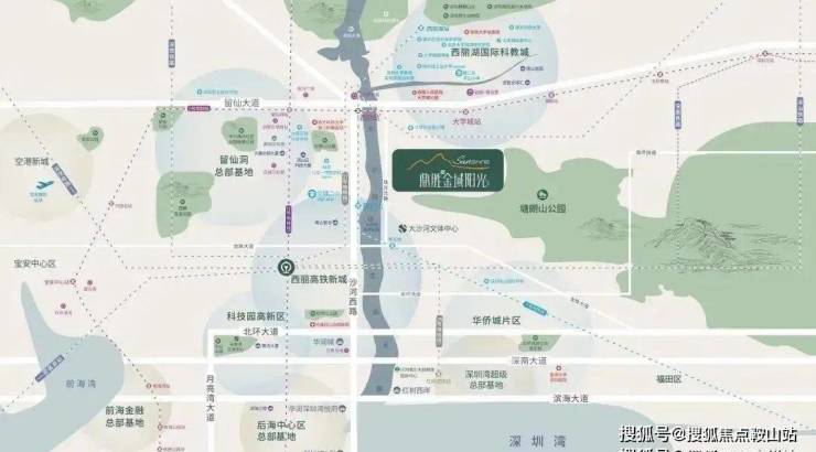 鼎胜金域阳光家园西侧为 西丽留仙洞总部基地,东北侧为 大学城,东侧为 塘朗山,西南侧是 西丽高铁站。