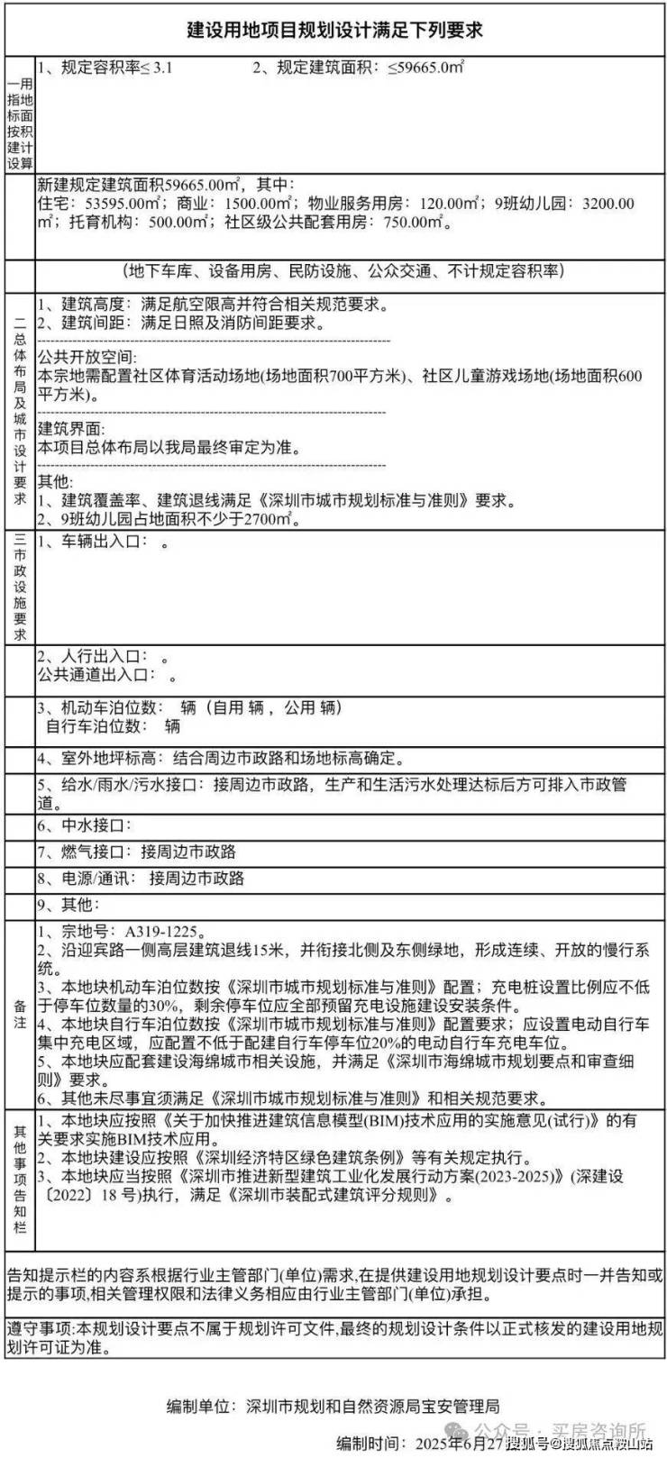 A319-1225宗地位于宝安区沙井新桥街道迎宾路与中心路交汇处西南侧,土地面积19246.94㎡,建筑面积59665㎡,容积率3.1,土地使用年限70年。