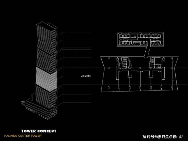 Morphosis 建筑事务所设计的汉京中心,采用核心筒外置的设计手法,最大化建筑平面的灵活性,将流线与各类基建设施置于塔楼外侧,对摩天塔楼类型建筑进行了再定义。先进的塔楼结构满足了室内空间配置的多样性,玻璃天桥和大型钢结构支撑将核心筒与塔楼主体紧密相连。项目竣工于2018年,到2021年才正式对外开放。这栋359.8米汉京中心是目前世界上最高的核心筒外置塔楼。