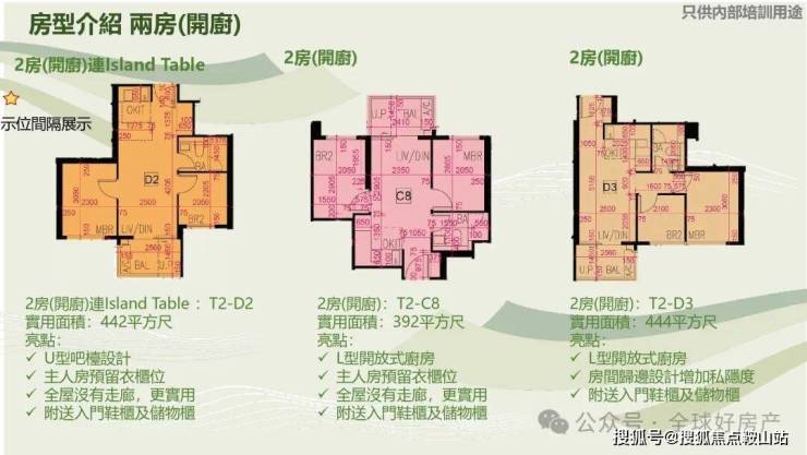 项目单位实用面积214至961平方呎(约20平至89平),户型涵盖开放式至4房。