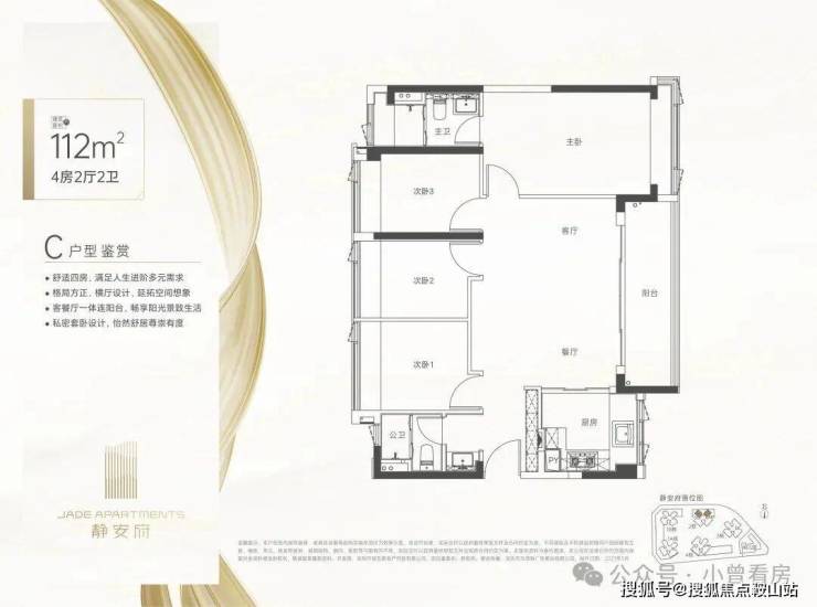 主力户型分析:项目主力户型涵盖建面约89–140㎡的3–4房,全系产品采用精装交付,注重空间功能性与居住舒适度。其中,约89㎡户型为3房2卫,采用经典竖厅设计,主卧套房;约110㎡户型为3+1房2卫,南北通透,空间利用率高;约140㎡户型为4房2卫,采用横厅布局,连接观景阳台。
