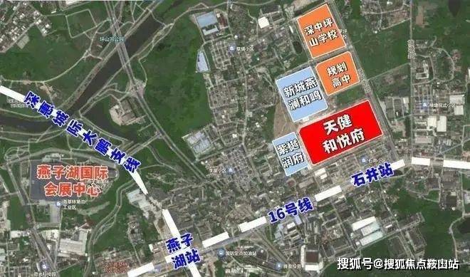 项目旁边即是燕澜和鸣花园,及华润的3.75万/平限价地,邻近地铁16号线石井站。