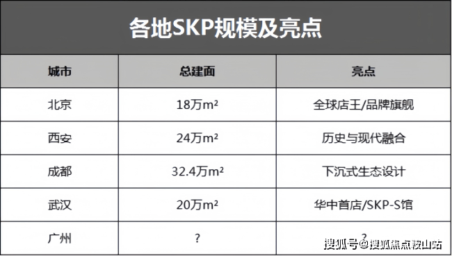 由于SKP在其他城市的项目规模普遍在20-30万㎡,广州项目预计也会控制在这一区间。现阶段谈判主要在北京进行,华联的强势态度让最终合作模式仍存变数。