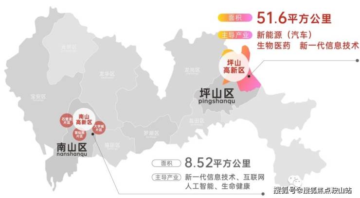 • 项目占位国家高新区、坪山大学城、燕子湖国际会客厅三核中心,潜力比肩南山科技园