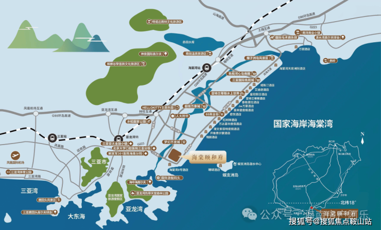4⃣国家级医疗及健身疗养基地:解放军总医院海南分院(301医院)、国际养生社区、国际康体机构为载体,配合高尔夫、温泉疗养等养生配套设施,形成疗养、休闲、康体一体化的养生湾区