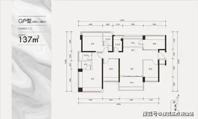 建面约137㎡双套间户型(四房三卫)