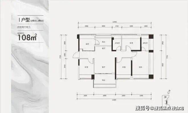建面约108㎡通透四房户型