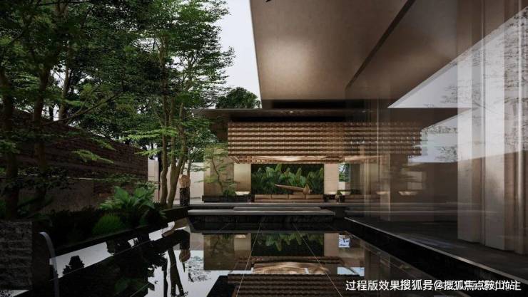 随着步履深入,两侧层叠的花木与镜面水景相映成趣,全石材高墙围合出私密领域,曲径通幽的设计让每一步都沉浸于静谧悠然的归家意境。