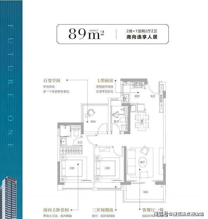 (3)主卧L型双面采光,270°江景视野