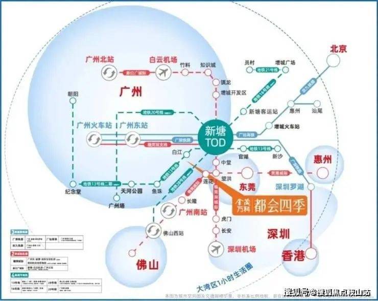 交通:1站新塘TOD,9轨交汇(4都市地铁,3国家铁路,2城际轨道),连接穗莞深港;