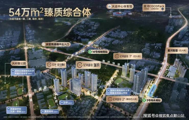 总建筑面积约54万㎡(含盛境一期、二期、御府、瑞府),集住宅、商业、公寓、办公等于一体的臻质综合体,打造星河大城品质生活圈,传承星河系匠心品筑精神,礼献都市人居典范。