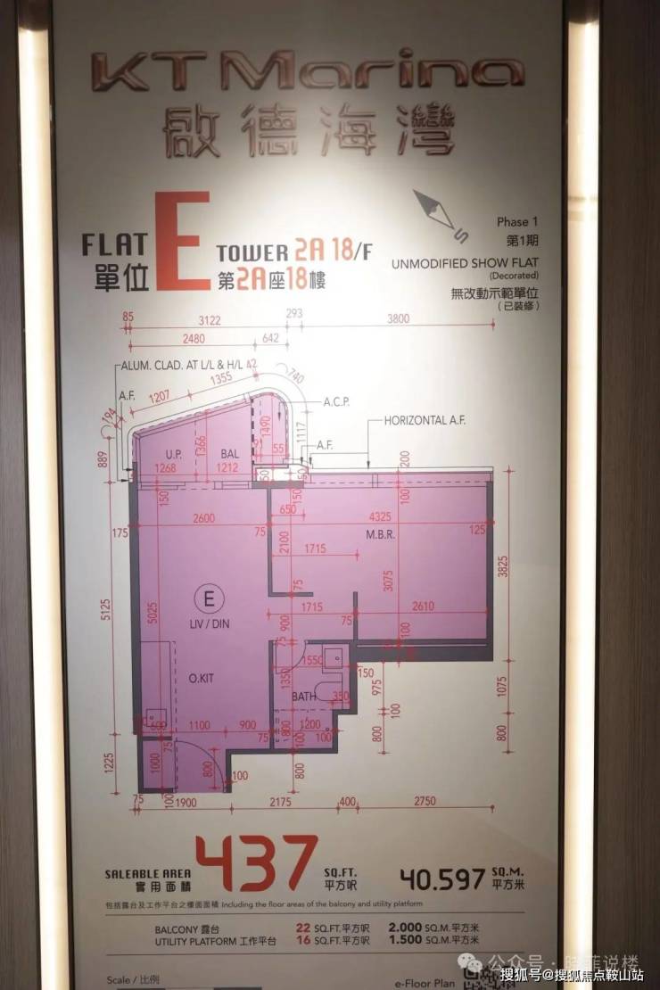 启德海湾 有装修无改动示范单位 2A座18楼E室(实用面积437平方呎、一房)