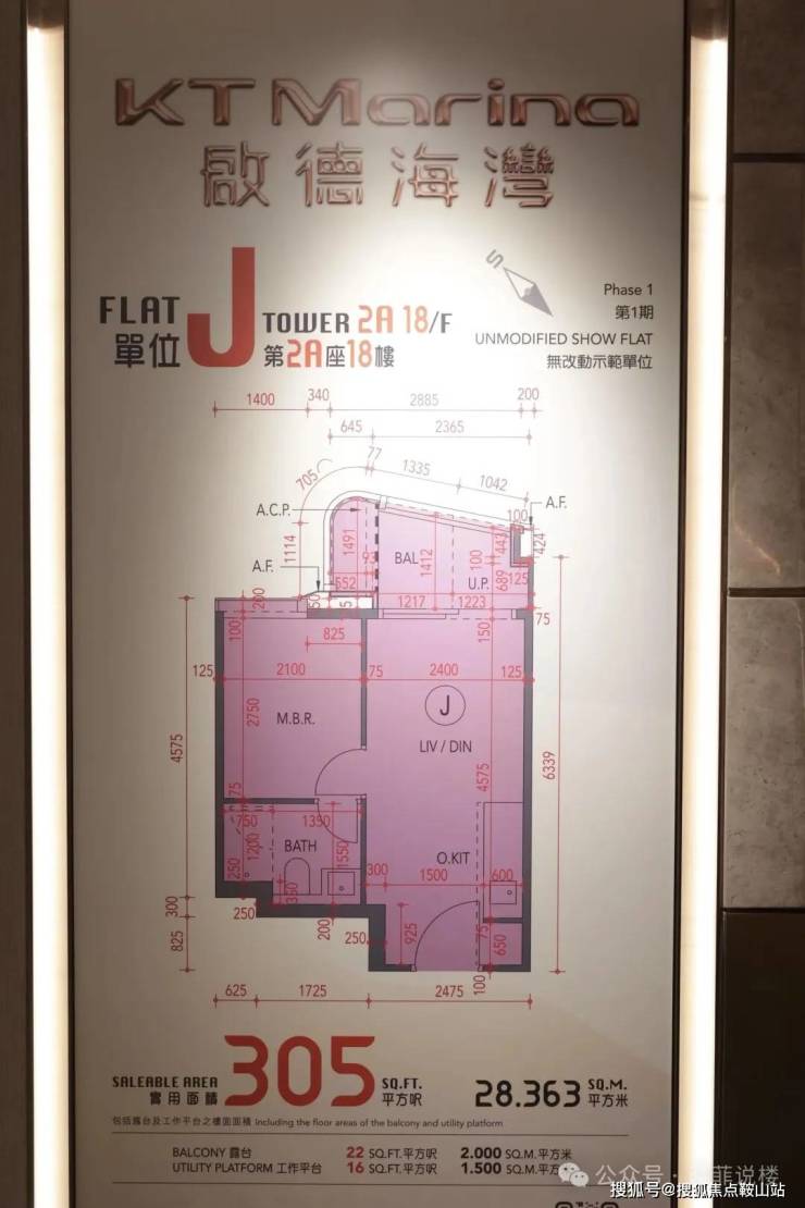 启德海湾 无改动示范单位 2A座18楼J室(实用面积305平方呎、一房)