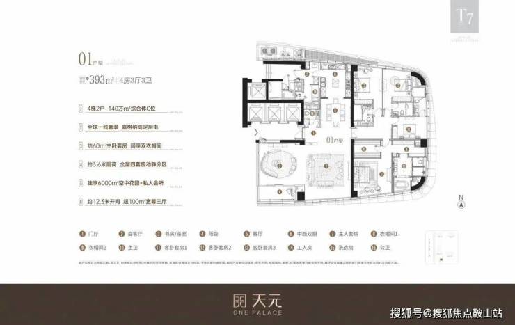 T7王座总裁公寓 【T7-01户型鉴赏】约393㎡四房三厅六卫