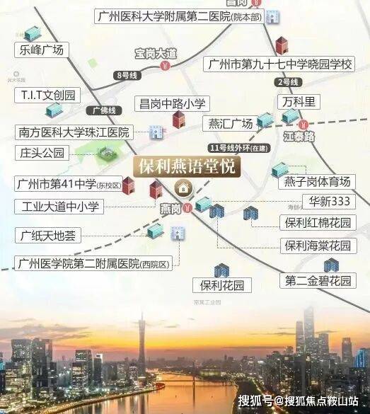 保利燕语堂悦坐落于工业大道中,背靠珠江后航道,处于海珠新活力文商旅融合圈与广州市首个后航道服务型制造创新带交汇的核心地带。这里不仅是海珠未来唯一连片开发的豪宅板块,也是连接中央活力区和广佛高新技术园区双向红利的最佳位置之一。