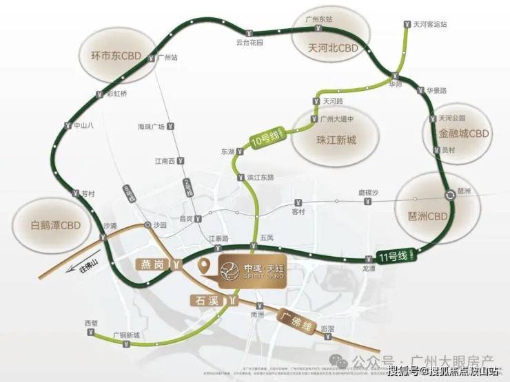 中建天钰坐拥双地铁,位于广佛线燕岗和石溪两个地铁站之间,步行距离分别是750米和900米,目前开通的是广佛线,燕岗站同时是大环线11号线的站点,去海珠琶洲、天河、越秀等核心板块都很方便;