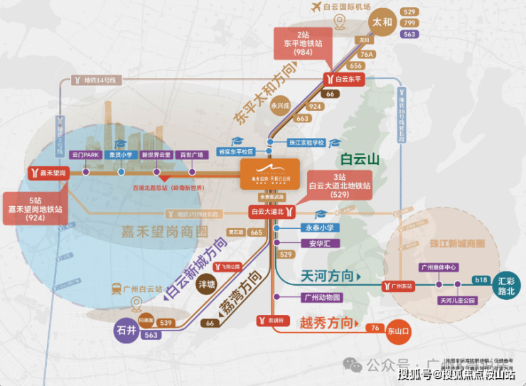 【地铁】地铁2号线、3号线、14号线,半小时通达广州主城中心生活圈;还预留公交站场与佛山地铁6号线地下衔接通道,未来将实现集公交、地铁一体化换乘。