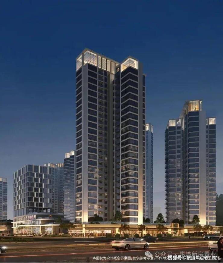 立面设计以“温暖港湾”为灵感,寓意航海远行后满载归来,让人们在城市之心就能抵达温暖港湾,尽享轻奢栖居。从广深沿江高速、深中通道的视角看,天际线呈前中后三个层次高低起伏,形成流动天际线,焕启一眼惊艳的天际风尚。