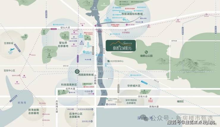 项目南依塘朗山,北面西丽湖,西临大沙河,推窗观山,临街瞰河,不仅营造了豪宅级居住体验,更是南山绝佳风水之地。