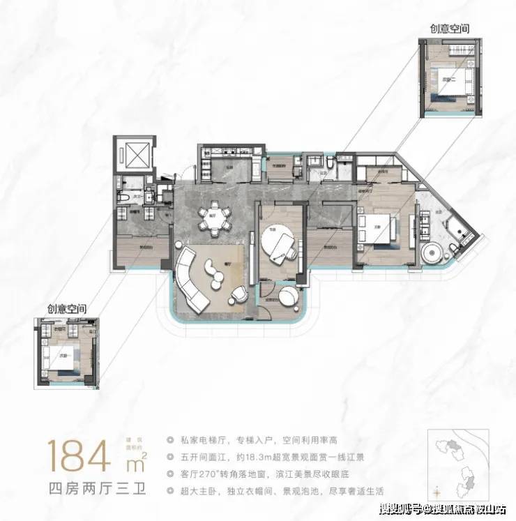 广州滨江上都一期璇湾,主推建面约109-253㎡一线瞰江华宅、建面约350㎡临江大平层公馆。