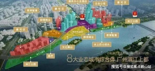 8大业态城市综合体,规划有大型商业,企业总部,星级酒店,滨江公园,文化艺术中心,教育医疗配套,高端居住及TOD立体交通于一体,广州唯一最全配套大体量的综合体。