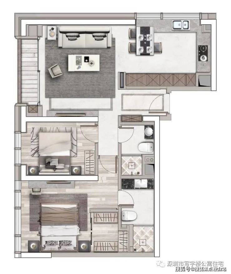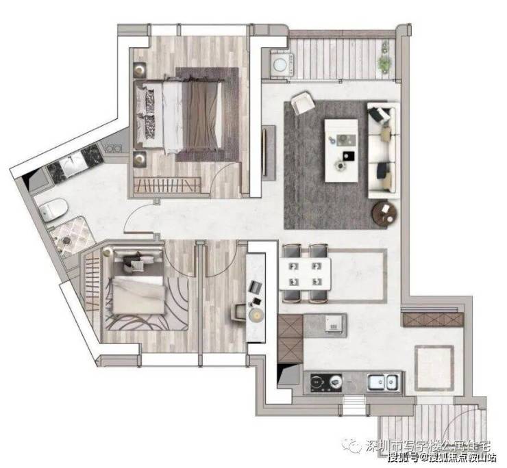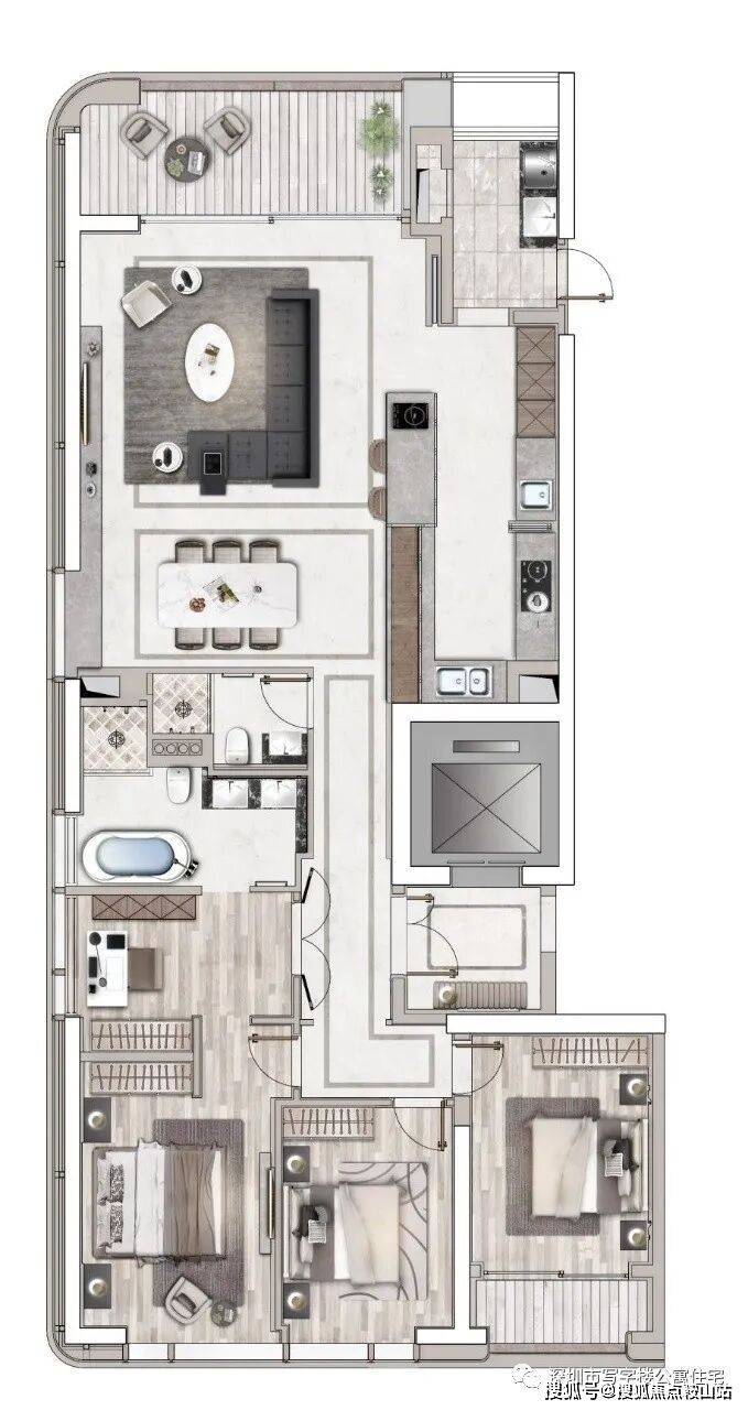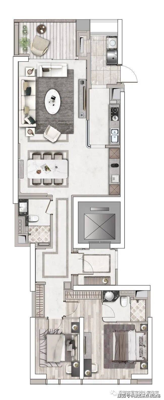 B座产品:约47-85-92-115-125㎡ 1-3房云端美寓,建筑面积约115㎡2+1房2厅1厅