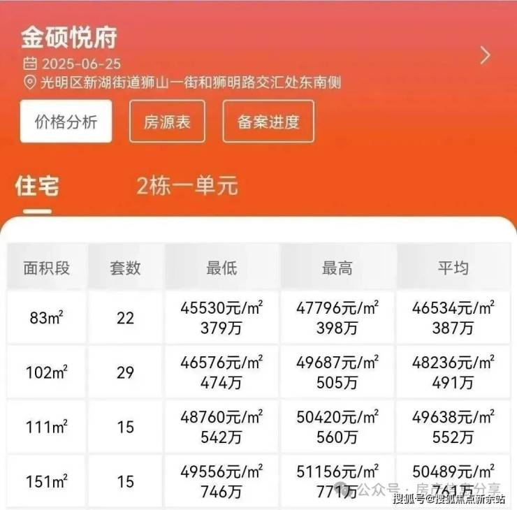 2025年6月25号、2栋一单元取证入市,共推出81套,面积83平~151平,备案均价48500元,备案总价378万~771万,折扣91折。