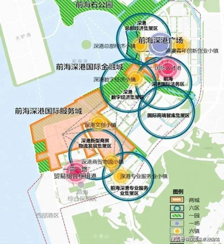 前海“两城六区一园一场六镇双港”系列建设计划示意图: