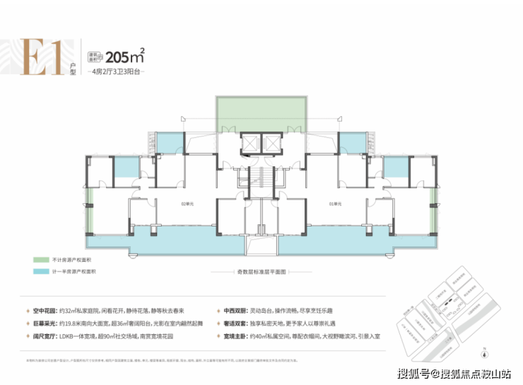 比如建面约205平4房(E2户型),不仅拥有一个约36平的阔绰阳台,还有一个约32平的专属庭院,可以在大平层实现庭院生活理想。
