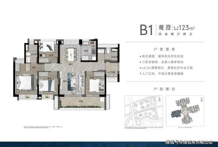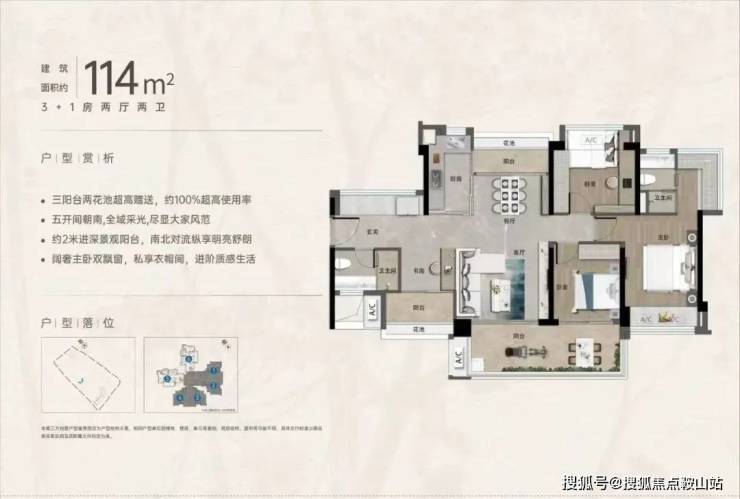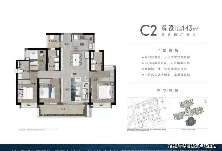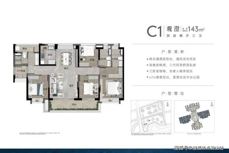 建面142平南向四房两卫,南北对流,6.6米阳台公园景观,大主卧,大客厅,270度主卧景观飘窗。