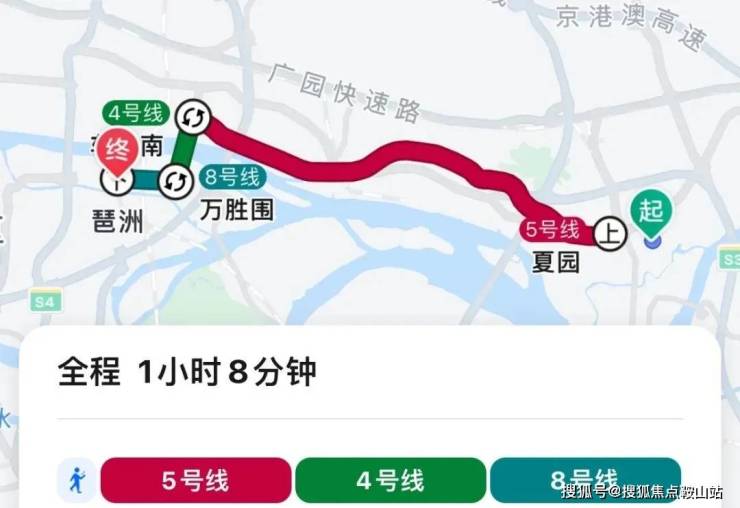 地铁去往琶洲:中央公园组团业主出小区步行至夏园站,乘坐5号线到车陂南换乘4号线,再到万胜围换乘8号线,全程11个站,耗时68分左右,阅海、观澄组团业主去往琶洲耗时63分左右。