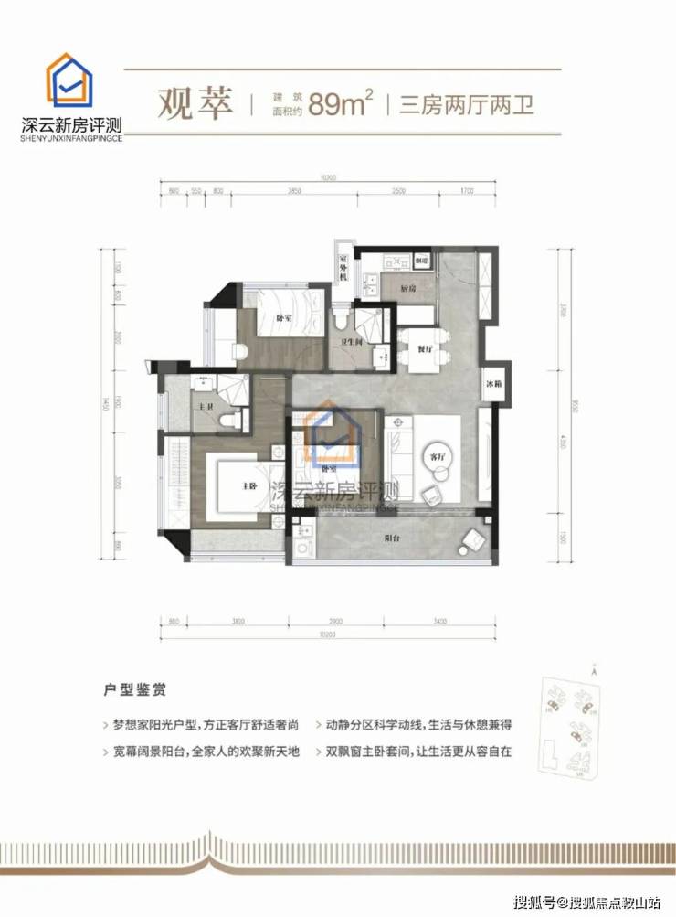 中建观玥占地约1.43万㎡,总建面约11.5万㎡,共由4栋总高32-33F住宅组成,其中1/2/3栋商品房33F,5栋商品房+保障房32F,4栋是1所6班制幼儿园。总规划820户,其中商品房719套,保障房101套(公租房+企业自持租赁住房),规划停车位约900个,容积率5.4。