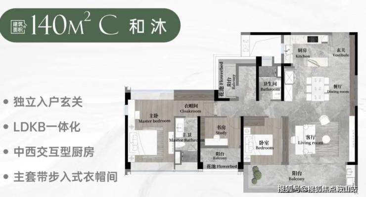 140平方和融:3室2厅2卫,超大衣帽间+入户玄关