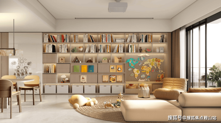 在客厅打造上,项目采用LDKB一体化设计,提前规划陪伴式生活场景,打造成长型家庭空间。