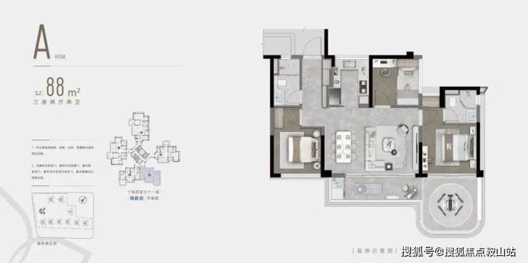 建面约88㎡户型样板间实景图