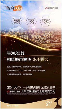 星河,深耕深圳30载,运营城市中心五星级酒店、集中商业等众多高端资源;商业自有面积超100万㎡、运营面积超180万㎡——福田&龙岗COCO Park、龙华COCO City、星河iCO等,以智慧构筑城市繁荣,兑现全城期待!!