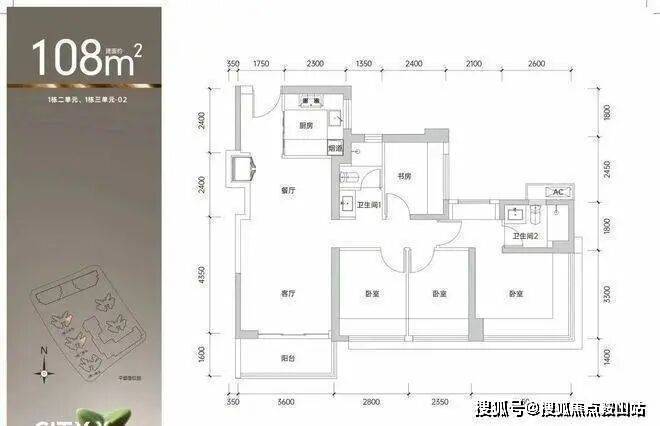 建筑面积约99㎡的3房2卫02/03/05/06户型:全南向爆款空间