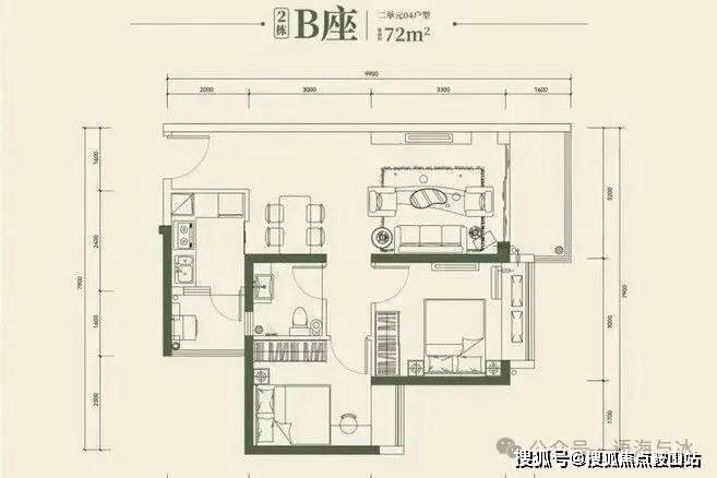 72-74平方米2房2厅1卫:适合年轻夫妇或单身贵族居住,空间布局合理,采光通风良好。