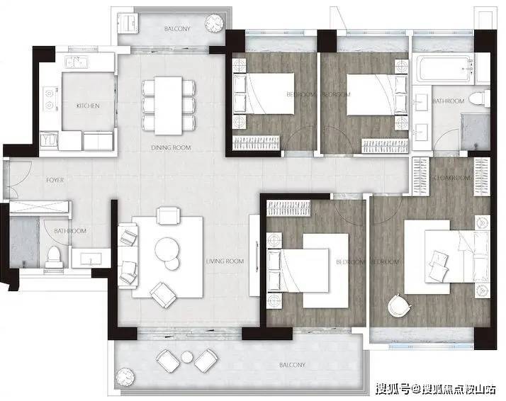主卧套房设计,超大阳台采光更佳