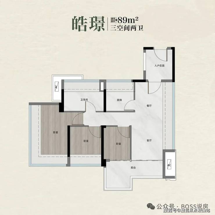 产品亮点:新规高使用率(据称超 100%),全屋飘窗,搭配入户花园与大面积阳台,空间通透。