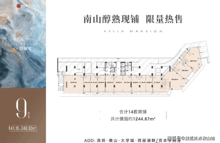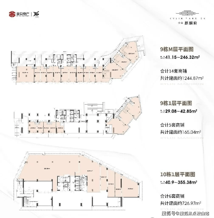 9栋M层为14套商铺,共计1244.87 ㎡;其中01-02-03铺为挑高铺; 整体为2层铺;