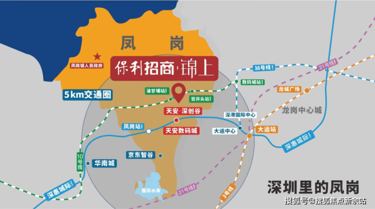 保利招商锦上位于天安数码城旁,深入深圳腹地,三面环深。5公里范围可直接享受龙岗大运、深圳平湖以及凤岗中心三大城市中心区所有配套。