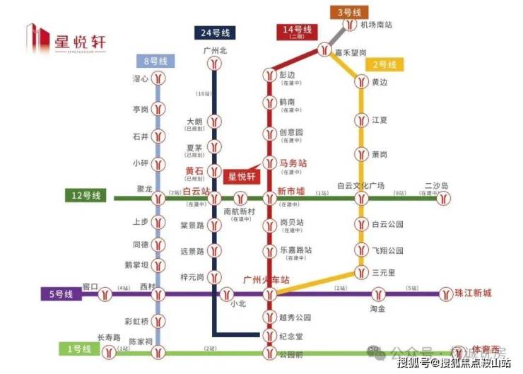 ◎12号线白云站(在建)与24号线黄石站