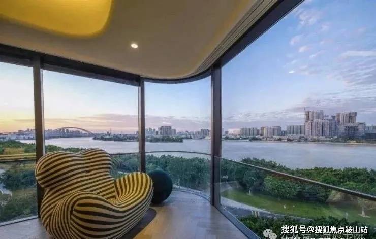 临江面采用大面积落地玻璃窗,环幕江景,270°立面转角全景落地窗,犹如海上行宫床头舱,江景视觉比客厅更佳。据闻,为了保持玻璃和石材的弧度,营造零瑕疵的天幕视野,不惜成本造价,耗费足足4个月的时间才完成安装。