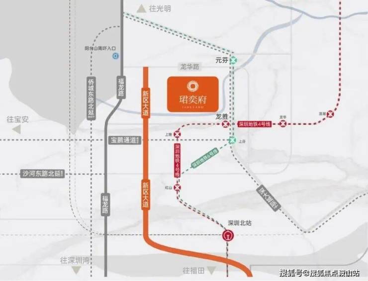 地铁:约500米4号线龙胜站,约800米6号线元芬站,3站深圳北, 5站福田;
